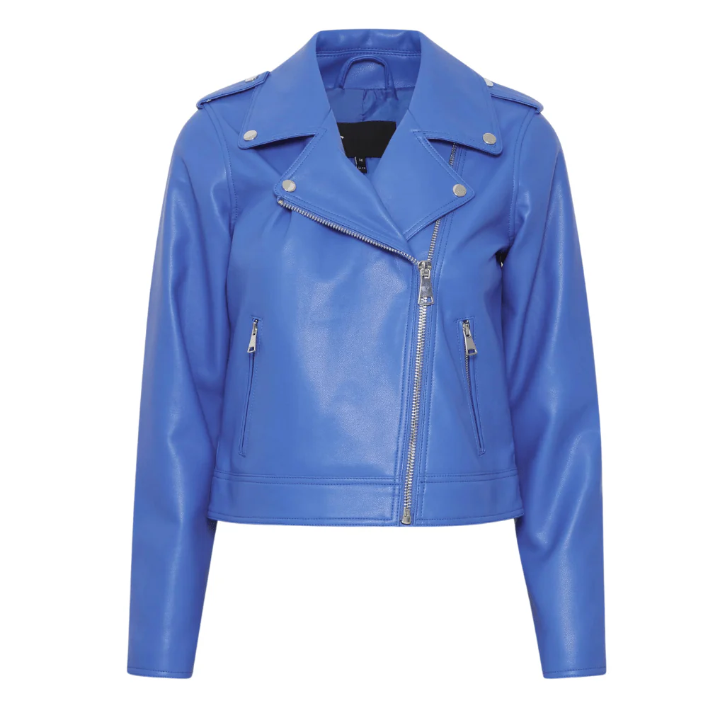 Indulge in timeless chic with our Ladies Real Lambskin Light Blue Moto Jacket. Crafted with real lambskin leather, this blue biker leather jacket boasts a snug fit and a stylish Biker design. The wide collar adds an extra edge. With a smooth asymmetrical zipper closure & ample pockets, it’s both functional & fashionable. Pair it with distressed jeans & ankle boots for a casual look, or throw it over a dress for a touch of rebellious elegance.